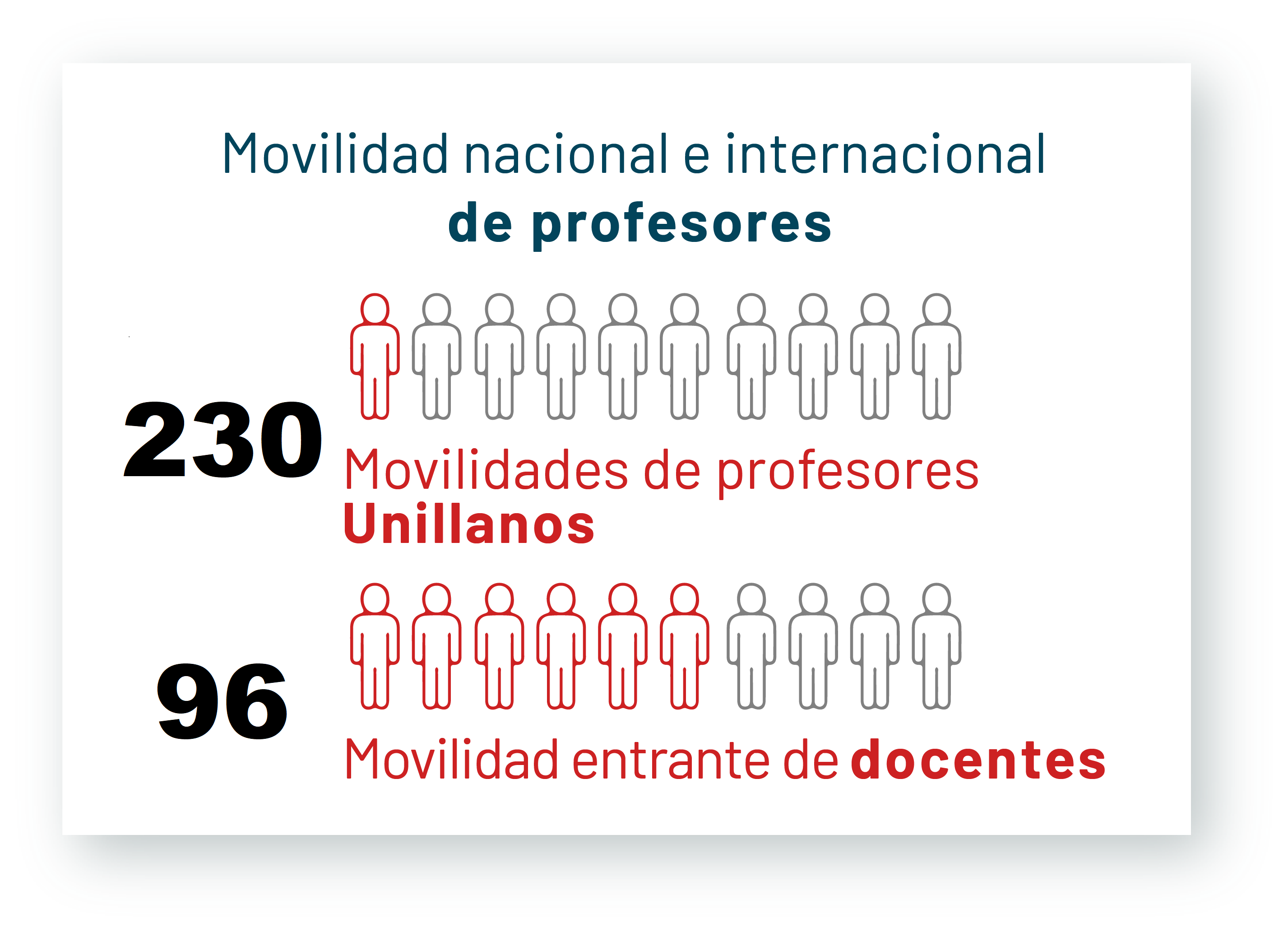 Docentes en Movilidad Académica de Estancia Corta, de los cuales 65 Docentes de Unillanos y 30 Docentes Entrantes.